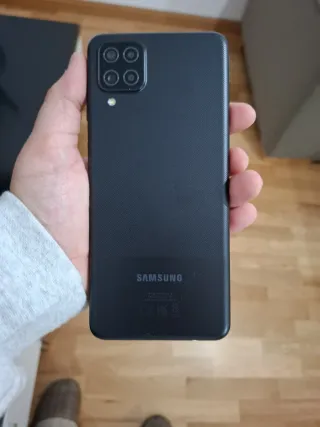 Teléfono móvil Samsung Galaxy A12 en color negro. - Pantalla de 6.5 pulgadas. - Cámara trasera cuádruple. - Batería de larga duración.