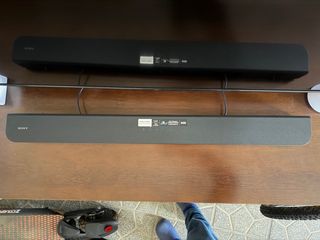 Sistema de sonido Sony con barra y subwoofer. Ha dejado de funcionar el subwoofer, pero la barra funciona perfectamente. Se puede utilizar para escuchar música sin bajos o enlazada con el TV. - Barra de sonido elegante.