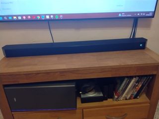 Base de sonido Yamaha SRT-1000. Gran calidad de sonido tope de gama en su momento No es una barra es una base que es mas grande para alojar un par de subwoofers dando unos muy buenos graves sin ser molesto (si quieres que retumbe todo debes añadir un subwoofer externo pero tiene opcion de conexion Conexiones rca analogica/2 entradas optica/coaxial y tambien BT para conectar tu movil y escuchar musica sin cables y con potencia Tiene mando a distancia y varios modos de sonido dependiendo del uso que se le de Muy buen sonido