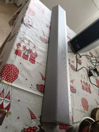 Barra de sonido de la marca Philips. Salidas HDMI, RCA, bluetooth y aux antes de la avería era que solo sonaban los altavoces de la derecha, lo llevé a servicio técnico y la respuesta es: La avería inicial es la etapa en la placa que está mal reparación 50€ y ahora no enciende porque me dicen que el cable Flex que conecta la placa con el display estaba tocado y hay que cambiarlo 10€ pero los altavoces funcionan todos para quien sepa arreglarlo