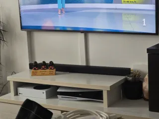 Televisión Samsung con acabado en negro y detalles plateados. Televisor de aproximadamente 46 pulgadas en muy buen estado. ✅ Imagen en perfecto estado, se ve genial ✅ Tamaño ideal para salón o habitación ✅ Funciona correctamente ✅ Incluye mando 🔊 Importante: el sonido funciona, pero no es totalmente nítido. Para uso normal se puede utilizar, pero recomendable usar barra de sonido o altavoces externos (con eso queda perfecto). 📏 Medidas aproximadas: 110cm x 73cm. Profundidad de patas 30cm.