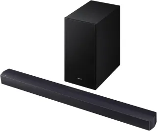 Barra de sonido Samsung HW-B450F con configuración 2.1. - Potencia de sonido envolvente. - Diseño elegante y moderno.