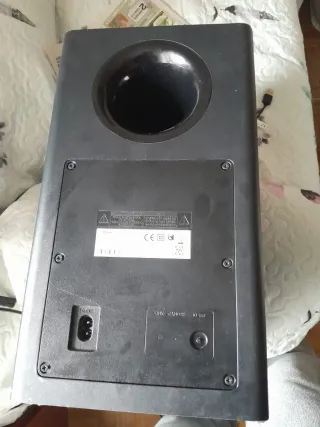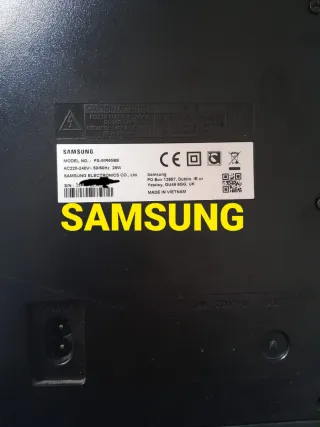 Barra de sonido Samsung en acabado negro y gris. Nueva, no tengo caja original y no me vale en el hueco que tengo ... precio original 170€ - Puerto bass reflex circular. - Panel trasero con conexiones y etiqueta de información.