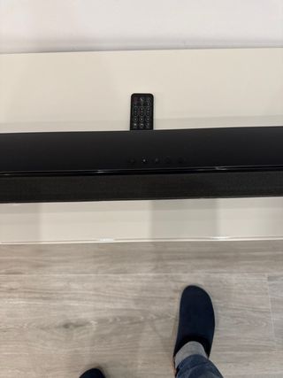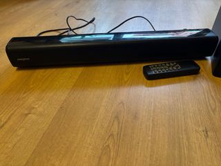 Barra de sonido elegante en color negro. - Diseño moderno y compacto. - Ideal para complementar tu sistema de audio. - Algún pequeño desgaste en el altavoz pero no afecta a su funcionamiento