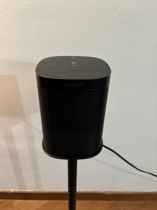 Sistema de sonido Sonos completo para una experiencia auditiva inmersiva. - Incluye 2 altavoces Sonos One. Incluye 2 soportes de suelo metálicos premium. Altura del soporte: 86,5 cm, perfecta para escucha en salón o como altavoces traseros en un sistema home cinema Sonos. - 1 Subwoofer Sonos Sub. Transforma completamente el sonido. Graves profundos, limpios y sin distorsión, incluso a volumen alto. Lo he usado siempre en casa, en entorno cuidado. Sin golpes ni caídas. - 1 Barra de sonido Sonos Playbar en color negro. Diseñada para mejorar la experiencia de audio en tu hogar.