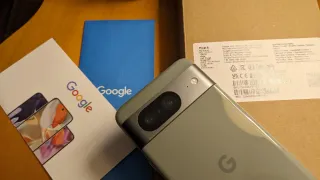 Teléfono móvil Google Pixel 8 en color gris y verde. - Pantalla de 6.2 pulgadas. - Almacenamiento de 128 GB. - Cámara dual trasera.