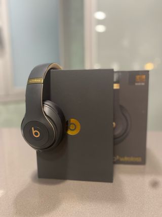 Auriculares Beats Studio 3 Wireless en acabado negro y dorado. Cancelación de ruido. Incluyen su funda protectora y caja original. Perfectamente cuidados. Hay que cambiar las almohadillas, que en Amazon están nuevas por 15€. Los compré para viajes largos, pero no les he sacado partido.