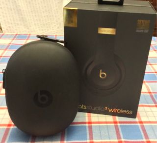 Auriculares Beats Studio3 Wireless en acabado negro y dorado. Incluyen su funda protectora. - Diseño elegante y moderno. - Acabado premium. - Incluye funda de transporte. -Las almohadillas están en perfecto estado cambiadas por la tienda de apple. -La calidad del audio sigue siendo igual de perfecta que el primer día. -No aparece en las fotos pero va incluido su cargador y enchufe