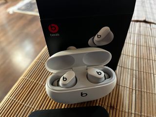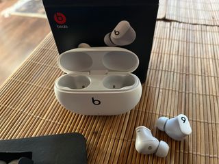 Auriculares Beats Studio Buds con cancelación de ruido, resistentes al sudor y compatibles con Apple y Android. 8 horas de música en cada auricular con dos cargas adicionales gracias al estuche (24h de autonomía). Color blanco. Usado dos o tres veces.