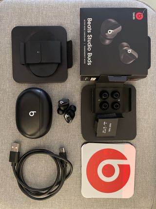 Auriculares inalámbricos Beats Studio Buds en color negro. Incluyen estuche de carga y varios tamaños de almohadillas nuevas sin usar (ya que usadas entiendo que no las querrás 😜) - Cancelación activa de ruido. - Siempre cuidados. - Carga rápida y duración larga. Los vendo porque tengo otros. Se entrega todo lo que se ve en las fotos.