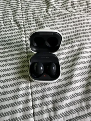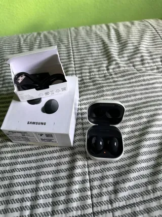 Auriculares Samsung Galaxy Buds 2, con su caja original y repuestos de gomas de los auriculares. Han sido limpiados a fondo para poder venderlos, funcionan genial, y no tienen mucho uso. Puedo hacer envío o en persona puedo moverme a Madrid ciudad como mucho. Respondo a cualquier pregunta.