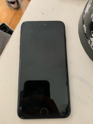 Teléfono móvil iPhone 6S Plus. - Pantalla negra. - Botón de inicio circular.