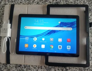 Tablet Huawei con pantalla de 10.1 pulgadas. Con cargador (aún está plastificado) y funda. Modelo Mediapad T5. RAM 3 Gb. Memoria 32 Gb. Como nueva, prácticamente no se ha usado, ni un solo arañazo. Recoger en Becerril de la Sierra (Madrid) - Funda protectora incluida. - Cargador y cable USB. - Sistema operativo Android.