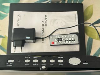inovix ipf-70 7” TFT LCD 480x234 ranuras SD, MMC, MS, USB, salida audio Lee fotos, audio y vídeo. con altavoz. incluye mando a distancia, soporte, manual, caja y marcos intercambiables negro y plateado. requiere enchufe