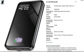 Batería externa 20000 mAh 22,5 W Power Bank Baterí