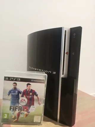 Consola Playstation 3 sin mando en acabado negro y plateado. Incluye el juego FIFA 15. - Consola Playstation 3. - Juego FIFA 15.