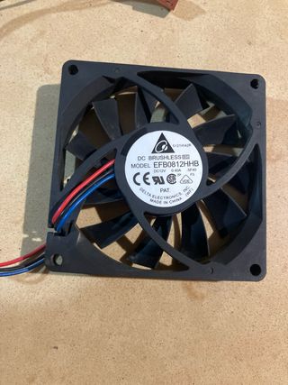 Ventilador de refrigeración EFB0812HHB de 80mm, obtenido de despiece. - Modelo: EFB0812HHB - Tamaño: 80 x 80 x 15 mm - Tipo: DC Brushless - Voltaje: DC12V - Corriente: 0.40A