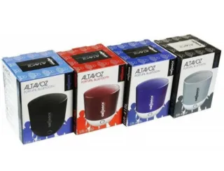 Conjunto de altavoces Bluetooth con un diseño retro inspirado en micrófonos clásicos. Vienen en varios colores llamativos. Ideal para regalar. Versión Wireless: V4.0. Distancia de alcance: 10 m. Potencia: 5W+5W 4Ω Respuesta de frecuencia: 200Hz-21KHZ. Batería: 3.7V / 1500 mAh. Tiempo de carga: 2-5 h. Tiempo de funcionamiento: Hasta 10 h. Con asa de transporte. Relación señal/ruido 85dB. Dimensiones: 220*74*93 mm. Peso: 640gr. Disponible en cuatro colores metalizados: Negro, plateado, azul y r - Diseño vintage. - Conectividad Bluetooth. - Asa para transporte.
