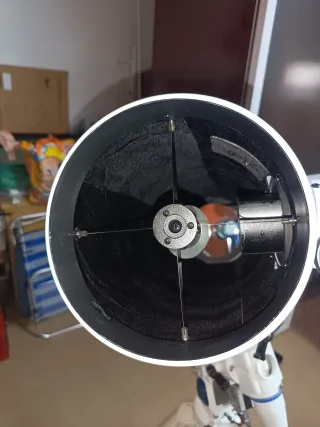 Telescopio Skywatcher 150/750 con montura meade lx70 (equivalente a una eq5). El telescopio se encuentran en muy buenas condiciones, se recubrió el interior con terciopelo negro para mejorar el contraste y tiene instalado un anillo de diafragma. La montura tiene buscador de polar y un sistema de motorización picgoto v5 que permite controlar el telescopio por wifi o bluetooth con programas como skysafari o stelaris. Incluye el buscador de serie, dos oculares, un maletín de transporte, la caja original del tubo, una máscara de bahtinov, un extensor de focal y el buscador de la polar. Preferible entrega en mano por el peso del equipo.