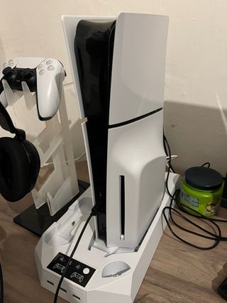 Consola PlayStation 5 Slim en color blanco y negro. - Incluye mando DualSense. - Base de carga para mandos. -lector de disco 1 Tera de almacenamiento Tiene seguro de lector de disco por tres años y la consola y mando conservan su seguro hasta el mes 7