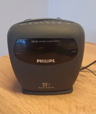 Radio-reloj despertador Philips con doble alarma. Sintoniza emisoras FM y MW. - Modelo: AJ3140 - Bandas: FM, MW - Funciones: Radio, Reloj, Doble Alarma