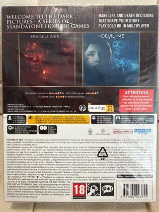 Juego para PlayStation 5, The Dark Pictures Anthology Volume 2. EDICIÓN LIMITADA COMPLETAMENTE DESCATALOGADO. INCLUYE LOSJUEGOS HOUSE OF ASHES THE DEVIL IN ME BARAJA DE CARTAS 2 PINES COLECCIONABLES MAPA EXCLUSIVO - Precintado de fábrica. - Incluye los títulos House of Ashes y The Devil in Me.