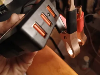 Cargador con varios puertos USB para cargar múltiples dispositivos a la vez. Diseño compacto y moderno. - Tres puertos USB de carga rápida. - Color negro. Pinzas para bateria Transformador de 12 V a 5 V