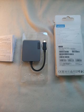 Adaptador de viaje Lenovo USB-C. - Conexión USB-C. - Puertos HDMI y VGA. - Puerto Ethernet. - Puertos USB adicionales.