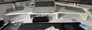 Eleva tus monitores con este práctico soporte. - Diseño moderno y minimalista. - Amplia superficie para colocar tus pantallas. - Estructura robusta y estable. En el Paquete sin abrir, compre dos, por error.