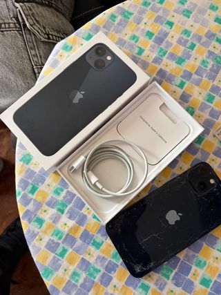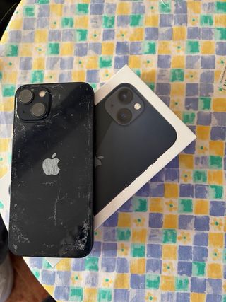 Teléfono móvil Apple iPhone 13 en color Azul oscuro. (precio negociable) - Incluye cable de carga USB-C a Lightning. - Diseñado en California. -Salud de batería al 88% -Parte trasera rota.