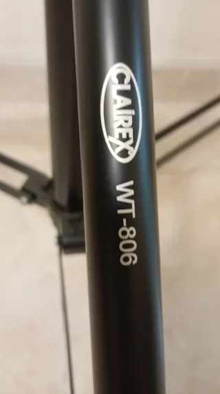 Trípode negro de altura ajustable, ideal para fotografía o iluminación. - Construcción robusta y estable. - Patas extensibles para mayor versatilidad. - Mecanismo de bloqueo seguro.