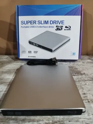 Más GANGAS EN MI PERFIL Unidad súper fina y portátil para leer y grabar Blu-ray, DVD y CD. Funciona por USB (sin enchufes raros), compatible con Windows, Mac y Linux. Ideal para ver pelis, instalar programas o hacer copias de seguridad. Muy poco uso, está impecable. Incluye cable USB. 💻 Plug & Play, conectar y listo.