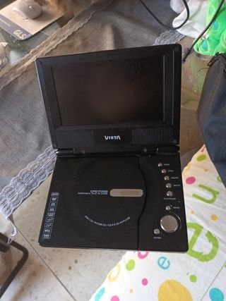 Reproductor de DVD portátil Vieta CPD7000, ideal para viajes en coche. - Pantalla integrada. - Compatible con DVD, CD, VCD, MP3, WMA, JPEG. - Puerto USB y lector de tarjetas SD.