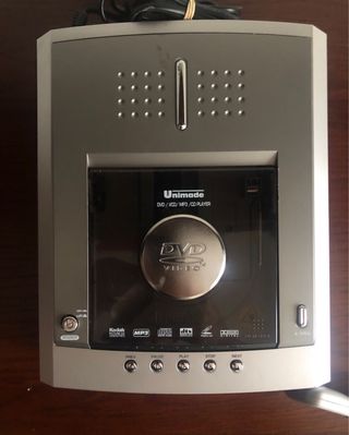 Reproductor de DVD y CD de la marca Tecnimagen. Diseño plateado y compacto. - Reproduce formatos DVD y CD. - Frontal plateado. Lo vendo pq ya no lo uso. Funciona bien, aunque algunos CD o DVD copiados no los lee correctamente y hace algo de ruido. No incluyo mando (si lo encuentro me comprometo a avisar al comprador y enviárselo sin coste alguno).