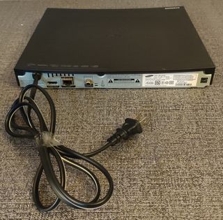 Reproductor de Blu-ray de la marca Samsung. Diseño elegante y compacto. Usado solo una vez. Comando a distancia. - Color negro. - Puerto USB frontal.