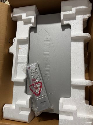 Lector de DVD de la marca Samsung en perfecto estado embalado en su caja original con mando a distancia y cables de conexión