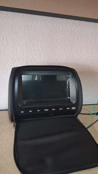 Reproductor de DVD para reposacabezas de coche. Ideal para viajes largos. Vienen 2 uds por caja / tenemos 3 cajas que vendemos por separado - Pantalla integrada. - Botones de control en la parte frontal. - Funda protectora de polipielnegra.