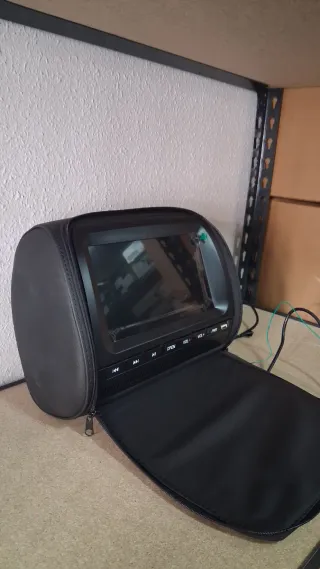 Reposacabezas para coche con reproductor de DVD. - Pantalla de 9 pulgadas. - Lector de tarjetas. - Compatible con DVD/CD/MP3/MP4. - Soporta juegos con mando. - Incluye mando para 2300 juegos.