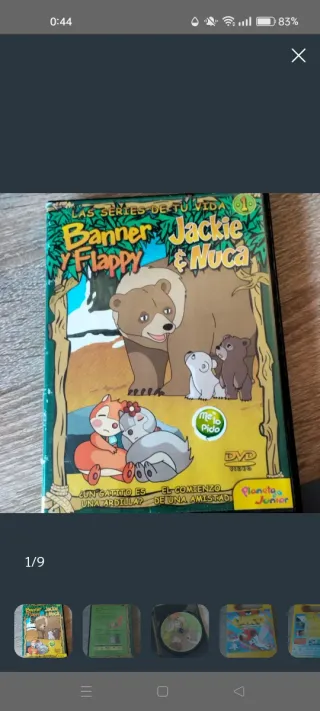 DVD de la serie infantil Banner y Flappy Jackie & Nuca. - Contiene episodios de la serie. - Incluye el logo de Me lo pido. - Editado por Planeta Junior.