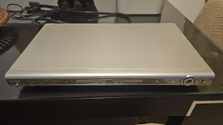 Reproductor de DVD de la marca LG y regalo de 14 películas Diseño plateado y compacto. - Mando a distancia incluido. - Cable de alimentación. Le falta el cable euroconector que va del DVD a la tele.