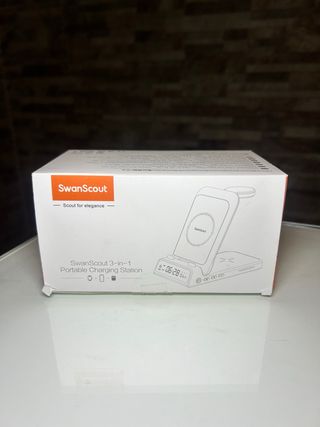 Vendo SwanScout 3-in-1 Portable Charging Station, NUEVA Base de carga inalámbrica 3-en-1 que permite cargar móvil, smartwatch y auriculares al mismo tiempo, con reloj digital integrado visible en todo momento. Producto probado solo para comprobar funcionamiento, nunca usado de forma continuada. Características: • Modelo: 3-in-1 Portable Charging Station • Carga inalámbrica simultánea (móvil + reloj + auriculares) • Reloj digital integrado con control de brillo • Función soporte para teléfono • Diseño plegable y compacto Incluye: • Base de carga SwanScout • Cable de alimentación • Manual original • Caja original