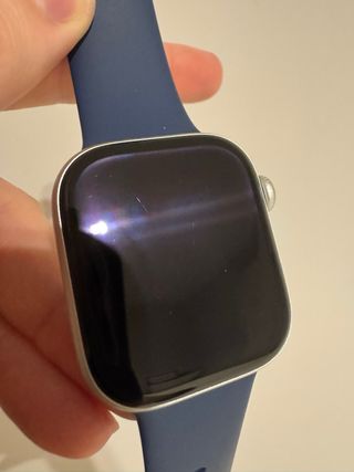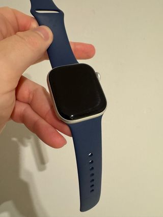 Reloj inteligente Apple Watch Series 10 de 42 mm en color azul y plateado. La batería tiene un 97% de vida útil. - Tamaño de caja: 42 mm. - Color de la correa: Azul. - Color de la caja: Plateado. Lo vendo con todas las pulseras de la foto por 250€. Hay 3 originales de apple a la izquierda del todo (la negra de apple y 2 nike, las 3 practicamente nuevas). El resto son bastante buenas, incluso la negra de eslabones es de titanio. Si no se quieren las pulseras. Solo con 1 por 200€. Es una ganga tantas pulseras!!