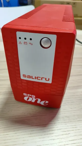 Sistema de alimentación ininterrumpida (SAI) Salicru. - Capacidad de 900VA. - Diseño compacto en color rojo. - Indicadores LED para estado y batería. - Botón de encendido/apagado frontal. Opción de cambio de batería por 20€ adicionales