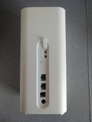 Router 4G Huawei B818-263 (4G Router 3 Prime) en color blanco. Vodafone Gigacube 4G CAT19 (hasta 1.6 Gbit/s de descarga y 150 Mbit/s de subida). Con firmware Vodafone, pero es libre. Dos puertos Ethernet, un puerto RJ11 y dos conectores para antena externa. Funciona a la perfección. Ideal para tarifas ilimitadas de telefonía móvil 4G+ o 5G y así tener internet portátil y barato. Compatible con todos los operadores móviles (sin bloqueo de SIM, probado con Vodafone y Digi)
