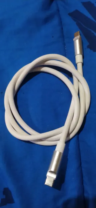 Cable blanco para cargar dispositivos. - Conector USB. - Conector Lightning. - La marca no me acuerdo. - Está nuevo sin usar.