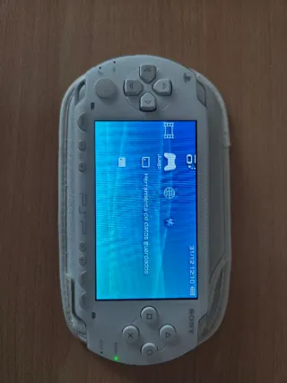 Consola portátil Sony PSP 1004 en color blanco. Modelo de Reino Unido, con cargador UK. En gran estado de conservación pese a tener 20 años. Solo tiene un leve arañazo en el metal de la parte trasera. Los botones de la parte baja y el joystick se han puesto algo amarillos por el paso del tiempo. La pantalla tiene 5 pixeles muertos. La batería aún funciona y no se ha deformado. La consola nunca se ha desmontado pero no tiene la versión de software original, aunque se podría revertir. Incluye accesorios originales sin usar.