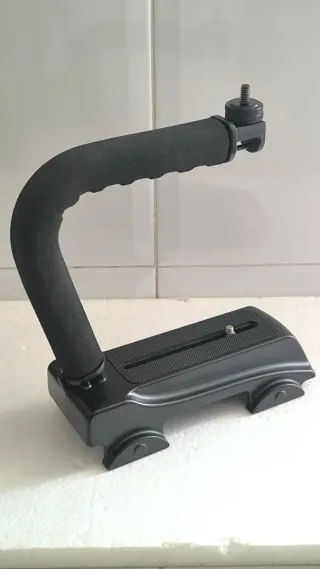 Estabilizador manual para cámara de la marca COCO. Diseñado para mejorar la estabilidad al grabar. - Mango ergonómico con agarre acolchado. - Soporte ajustable para cámara. - Construcción en plástico negro. Regalo el tornillo adaptador que se ve en la parte superior del estabilizador. Ver fotos Dimensiones 22 x 22 x 9 cm. También tengo la caja pero está bastante deteriorada debido, en su día, al transporte. Sólo venta en persona. No hago envío de este artículo.
