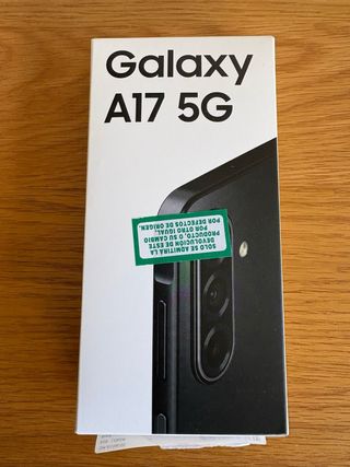 Teléfono móvil Samsung Galaxy A17 5G con 256GB de almacenamiento. - Pantalla de 6.5 pulgadas. - Cámara principal de 50MP. - Batería de 5000 mAh. - Conectividad 5G. El telefono nunca se ha utilizado, solo se ha abierto para verlo, fue un regalo, se entrega la Factura de compra de El Corte Ingles.