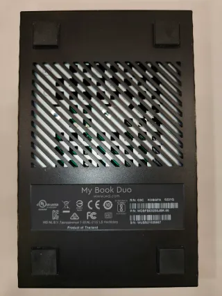 Vendo carcasa/enclosure de alto rendimiento Western Digital My Book Duo. Ideal si ya tienes tus propios discos duros y buscas una controladora profesional para configurar un sistema RAID 0 o RAID 1 con conexión USB-C. A TENER EN CUENTA: - SIN DISCOS DUROS: Se vende únicamente la carcasa y la electrónica. No incluye almacenamiento interno. - ESTADO ESTÉTICO: La parte superior aún conserva el plástico protector. Presenta algunas marcas de uso/rayas en el lateral derecho (ver fotos para detalle), pero nada que afecte a su funcionamiento. - CABLE USB: No está incluido. Puedo incluir un USB-C to C 3.1 Gen 2 10Gbps por 10€.