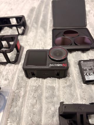Está como nueva 10/10. Incluye: - DJI Osmo Action 5 PRO Standard Combo - Filtros ND 8, 16 y 32 - Jaula de metal Amazear - Vidrio templado para las pantallas y la lente